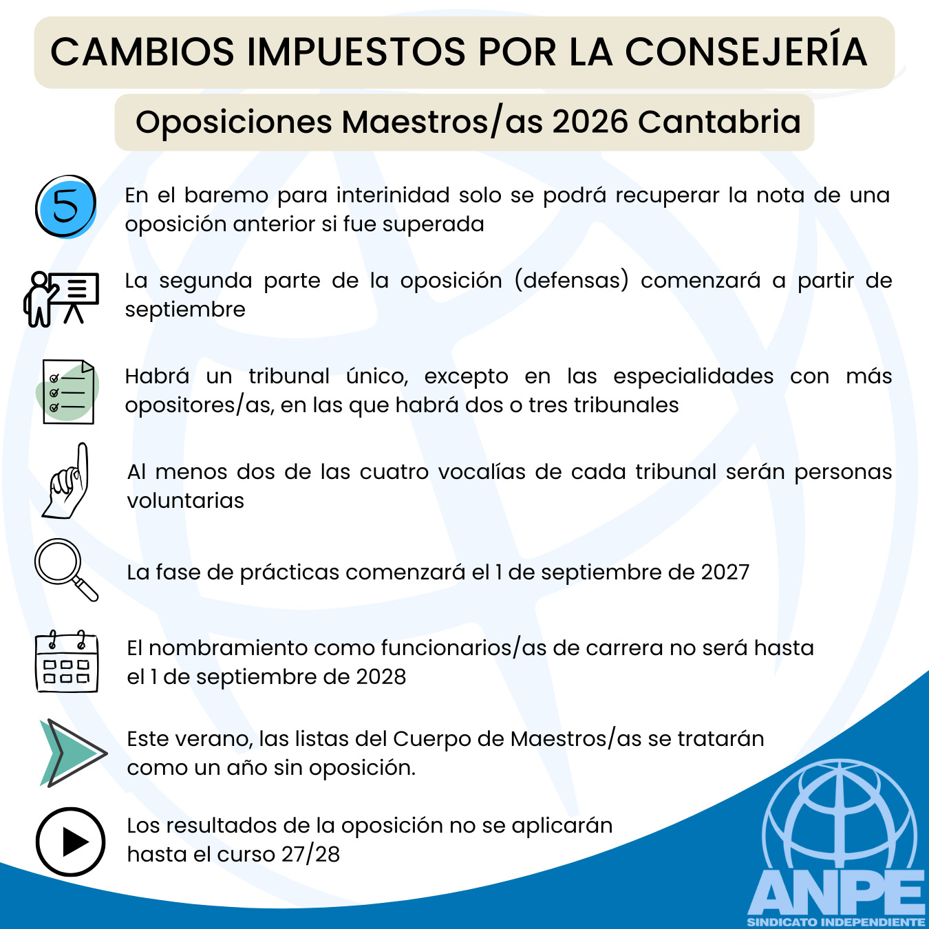 • El verano de 2026 las listas del cuerpo de maestros/as (vacantes y sustituciones) se tratarán como un año sin oposición: